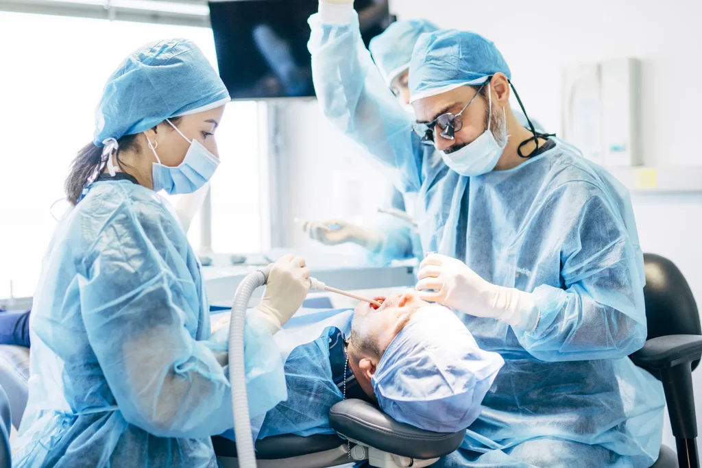 پزشک با بررسی وضعیت دندان و استخوان بیمار، تصمیم به انجام جراحی میگیرد.